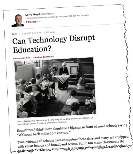 I’m conflicted: On the one hand, I’m very much in favor of technology disrupting traditional education. On the other hand, what about the value of traditional educational institutions as rite of passage, validation, and cultural catalyst? Can we possible have it both ways? So many people agree education has to change. Imagine a tablet-based program … Continue reading Can We Disrupt Education Without Losing Its Benefits?